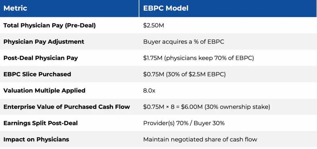 Physician practice transactions are often structured around valuation and compensation frameworks, with a key focus on the EBPC model. Consider a simple case study of a five-doctor behavioral health group with $7.50M revenue, $5.00M in operating expenses, and thus $2.50M in EBPC.